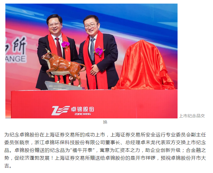 致力于環境保護、惠及人類社會,卓錦股份成功登陸上交所科創板