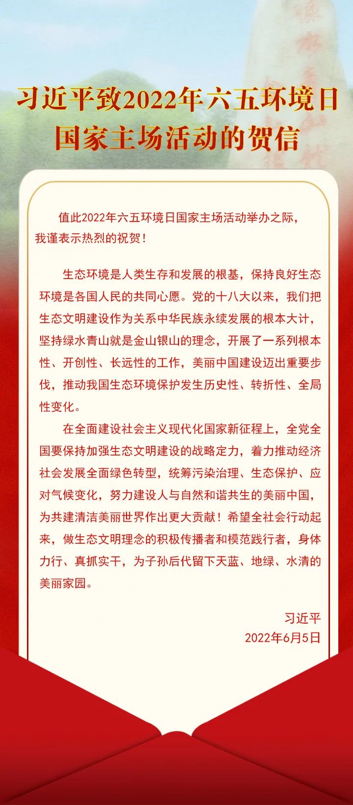 2022年六五環(huán)境日國(guó)家主場(chǎng)活動(dòng)5日在遼寧省沈陽(yáng)市舉行。中共中央總書記、國(guó)家主席、中央軍委主席習(xí)近平發(fā)來(lái)賀信,向活動(dòng)的舉辦表示熱烈的祝賀。