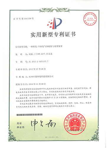 實用新型專利(一種揮發、半揮發氣體收集與處置裝置)