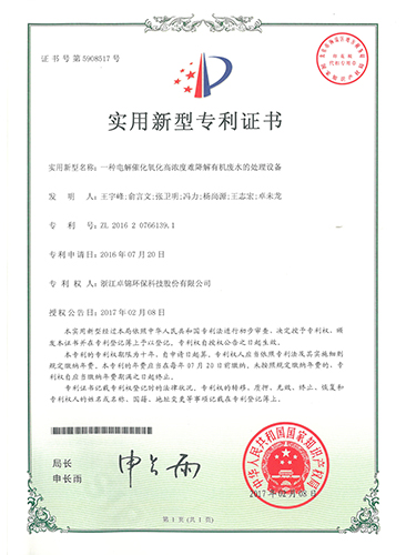 11 高濃度有機廢水電解催化氧化工藝及設備研發 杭州市農業與社會發展入庫項目