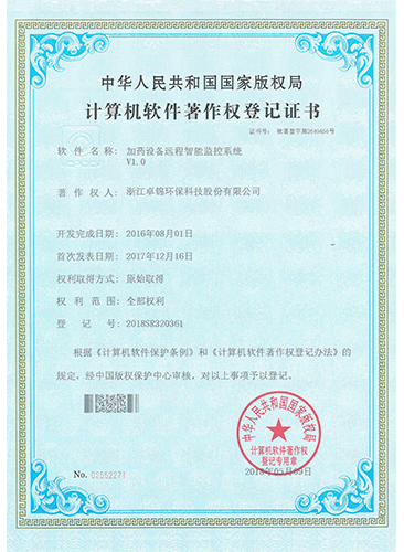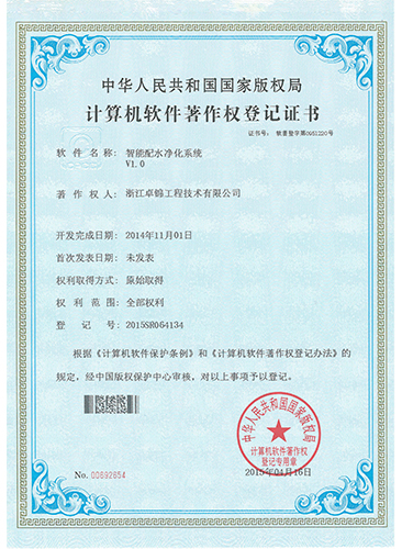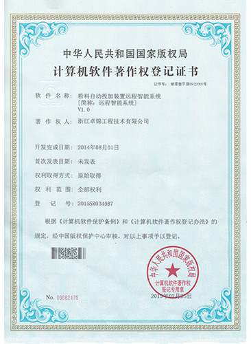 粉料自動投加裝置遠程智能系統計算機軟件著作權證書